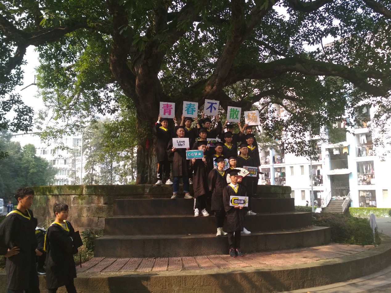 11月12日中午2点15分,机电11801班四十四位同学不约而同聚集到A1区大榕树下参加毕业留影拍照活动。