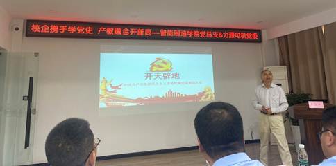 党史学习从新民主主义革命时期、社会主义革命和建设时期、改革开放和社会主义现代化建设新时期、中国特色社会主义新时代这四个时间段讲述了中国共产党百年历史。阐述了党员从自身工作实际情况出发,结合党史学习查找自身工作问题并及时改进,为实现中华民族的伟大复兴做出新贡献。最后,力源电机党委书记刘力总结了双方校企合作成果,并提出了双方校企合作开新局的实施规划,为推动下一步产教融合深入开展明确了方向和任务。