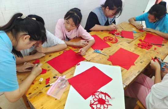 剪纸是中国最古老的民间艺术之一。剪纸艺术具有强烈而鲜活的生命力,展现出一种“生命的形式”。7月27日,在剪纸课上,队员杨丰连和徐静分步骤详细讲解了单色剪纸中五角剪和六角剪的折叠方法以及剪纸图案的绘制。剪纸活动不仅发展了学生的手指灵活性,而且使学生在艺术上得到熏陶。为学生们开启了一个丰富多彩、博大深厚的文化基因库。