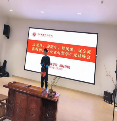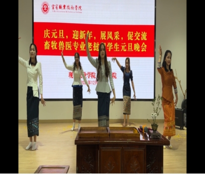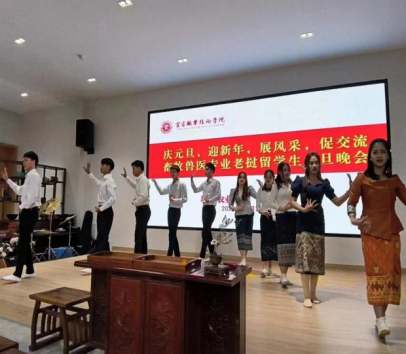 为增进中老友谊,传播中华优秀传统文化,提高老挝留学生的归属感和融入感,12月28日,现代农业学院在振兴园茶文化传播中心举办了畜牧兽医专业老挝留学生元旦晚会。现代农业学院党总支副书记杨仕群、副院长罗学平出席,2022级畜牧兽医专业老挝籍留学生张彭建主持。