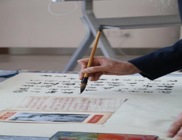 在家书临摹体验环节,民国风格的书案与特制“烽火信笺”营造出沉浸式氛围。党员们执笔蘸墨,一笔一画临摹家书原文,在书写中体悟字里行间的家国情怀。临摹结束后,大家将作品陈列于展示区,并围绕“家书中的信仰力量”展开交流,结合自身工作畅谈如何践行革命精神。