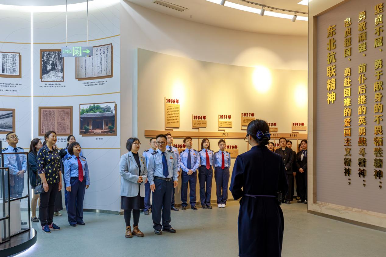 随后,嘉宾移步赵一曼革命文化研学馆。展馆以学术研究、红色家书、艺术创作等形式呈现了抗日女英雄赵一曼的革命精神与家国情怀。税务局同志在“红色家书”展柜前驻足,深切感悟“未惜头颅新故国,甘将热血沃中华”的赤子丹心。双方共同观看由师生原创的红色微话剧《微茫》,以青年视角致敬革命先辈的担当精神。