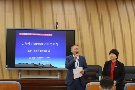 为深入贯彻落实党的二十大精神,切实落实教育部等十七部门印发的《全面加强和改进新时代学生心理健康工作专项行动计划(2023—2025年)》,加强我院心理健康教育教师队伍建设,提升其专业素养和综合能力,2023年10月31日我院特邀四川省心理学会高校心理健康教育专委会督导委员会主任肖旭教授来校举办“大学生心理危机识别与应对”讲座。讲座由建筑与环境学院党总支书记温燕萌主持,我院心理健康教育专职教师及全体辅导员聆听了讲座。