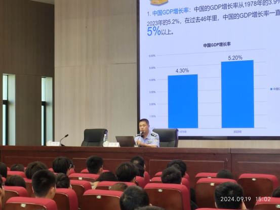 为进一步深入推进学校意识形态工作,确保意识形态安全,消除隐患、筑牢防线,9月19日下午,宜宾公安局南溪分局党委副书记、政委彭鑫以“开学第一课——国家安全与意识形态”为题,在勤勉楼231报告厅为广大师生做专题讲座。学校安全保卫部部长李强主持讲座。