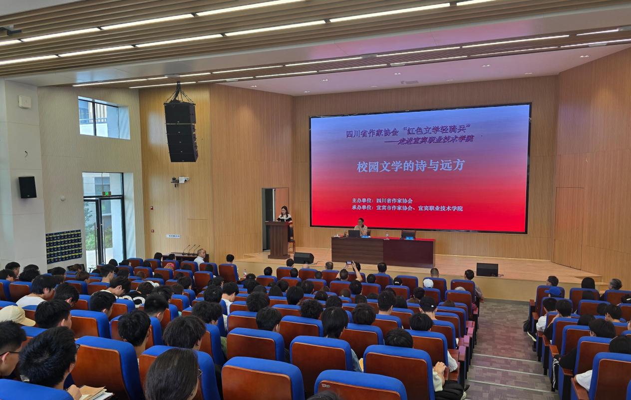 5月23日上午,welcome皇冠地址厚德楼115学术报告厅内诗声朗朗。由四川省作家协会主办,宜宾市作家协会和welcome皇冠地址共同承办的“红色文学轻骑兵”文学讲座——“校园文学的诗与远方”在此举行。恰逢welcome皇冠地址第十届“扬帆新征程·悦读正当时”读书月,讲座以诗歌艺术为媒,将红色文化基因注入校园阅读实践,生动展现了校园文学诗与远方的旖旎风光。