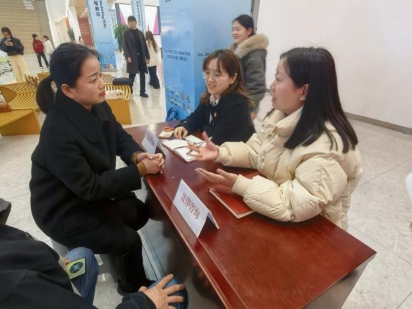 一旁的咨询区同样人气十足。马克思主义学院具有法学背景的教师现场“坐诊”,为同学们答疑解惑。小林也在这里提出了实习就业中可能遇到的权益保护问题。“老师用案例讲解,把法条变成我们能懂的生活道理,还提醒了签协议要注意的条款。”小林分享道。老师们围绕校园贷、电信诈骗、网络侵权等热点,帮助同学们明晰法律界限、掌握维权方法,让抽象的法律知识落地为具体的生活智慧。