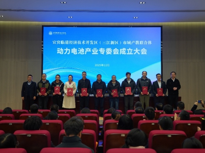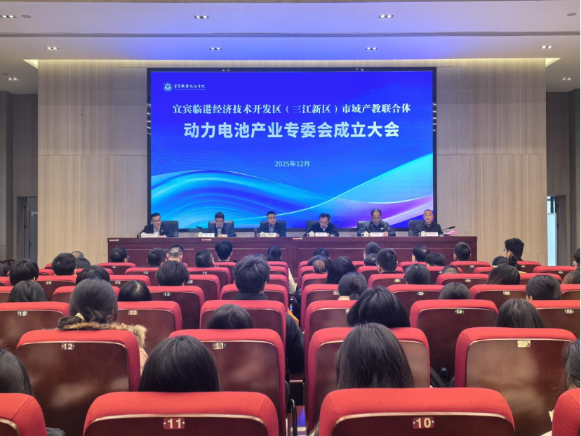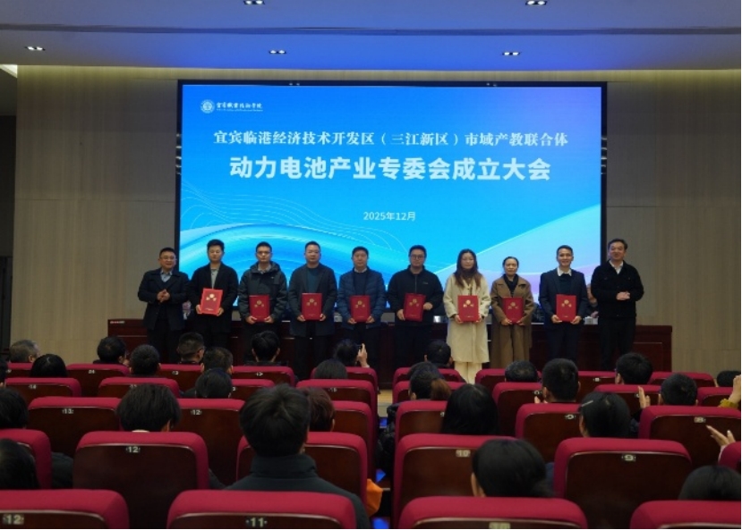 12月4日,宜宾国家市域产教联合体动力电池产业专委会(以下简称动力电池产业专委会)成立大会在我校隆重举行。学校党委副书记、校长张学尽出席并致辞,宜宾市经济合作和新兴产业局党组成员、副局长汪宁出席并讲话。学校党委常委、党政办主任、学生工作部部长郭正富主持。