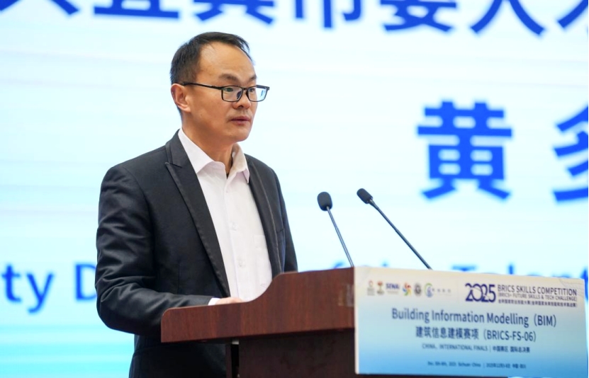 黄多辉在致辞中表示,本次大赛是金砖国家深化合作、共筑“人文金砖”的重要实践,宜宾作为东道主,将以开放包容的城市品格和扎实的产教融合生态,全力支持大赛成为各国青年互学互鉴、增进友谊的桥梁,共同推动建筑业数字化转型与绿色低碳发展。