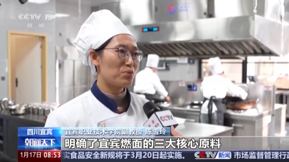 1月17日,在央视《朝闻天下》专题报道《麻辣鲜香!一碗“燃”爆味蕾的面》中,央视记者深入探访了宜宾燃面从传统小吃到现代产业的转型之路,特别关注了我校宜宾燃面学院在人才培养和技艺传承方面的关键作用。