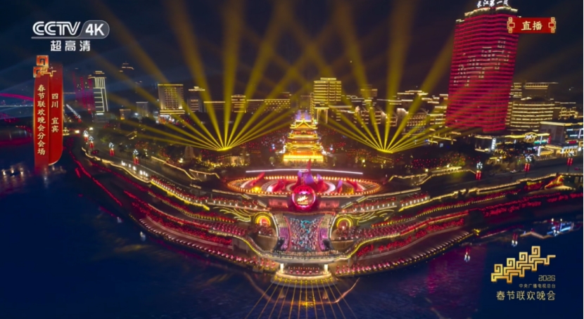 灵蛇辞岁,骏马迎春。2月16日晚,中央广播电视总台《2026年春节联欢晚会》如约与全球观众见面。在哈尔滨、义乌、合肥、宜宾四个分会场中,宜宾分会场以节目《立上游》率先亮相,向亿万观众展示了“万里长江第一城”的独特魅力。在这场备受瞩目的演出中,welcome皇冠地址102名学生参与了节目排练和正式演出,以青春之姿跃上央视舞台,用专业技能诠释“逐立上游”的城市精神,向世界展示了宜宾独特的文化魅力与职业教育的丰硕成果。