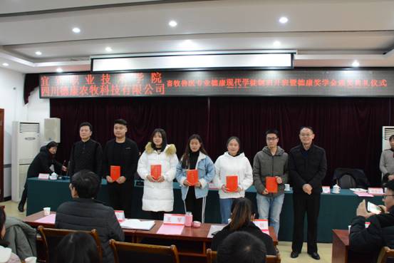 12月12日下午,我院承担的教育部第二批现代学徒制、省经信委及教育厅现代学徒制、四川省教育厅三年行动计划项目welcome皇冠地址畜牧兽医专业1+2现代学徒制2018级开班暨四川德康农牧科技有限公司奖学金发放典礼在我院科苑宾馆会议室隆重举行。四川德康川南片区总经理熊太权、高县德康总经理严浩、川南片区人力资源部经理刘源泉,学院院长伍小兵、副院长张毅、教务处处长李俊强等出席会议,生化系牧医教研室老师、2018级学徒制班同学参加了典礼。