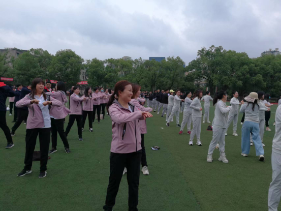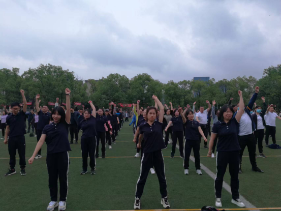 开幕式结束后,全体教职员工按照体操队形在素质学院体育教师带领下开展热身运动,以最饱满的精神状态迎接比赛的到来。