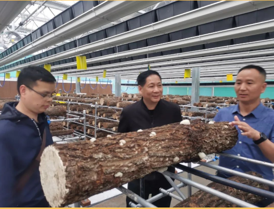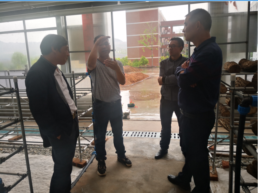 周黎军在通江职高校长朱旭德的陪同下,逐一参观了该校银耳科普展厅、银耳种植生产区,对生产性实训基地建设给予充分肯定并进行了技术指导。