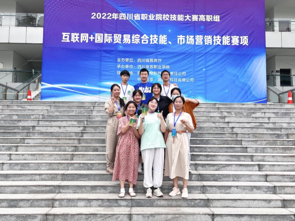 2022年6月15日至16日,2022年四川省高职院校“互联网+国际贸易”技能大赛在四川商务职业学院举行。经贸管理学院由商贸教研室主任胡桂香带队,在教师肖林、白冬梅指导下,参赛学生郭恺怡、赵芊、卢思奇、张鑫获得三等奖1项。