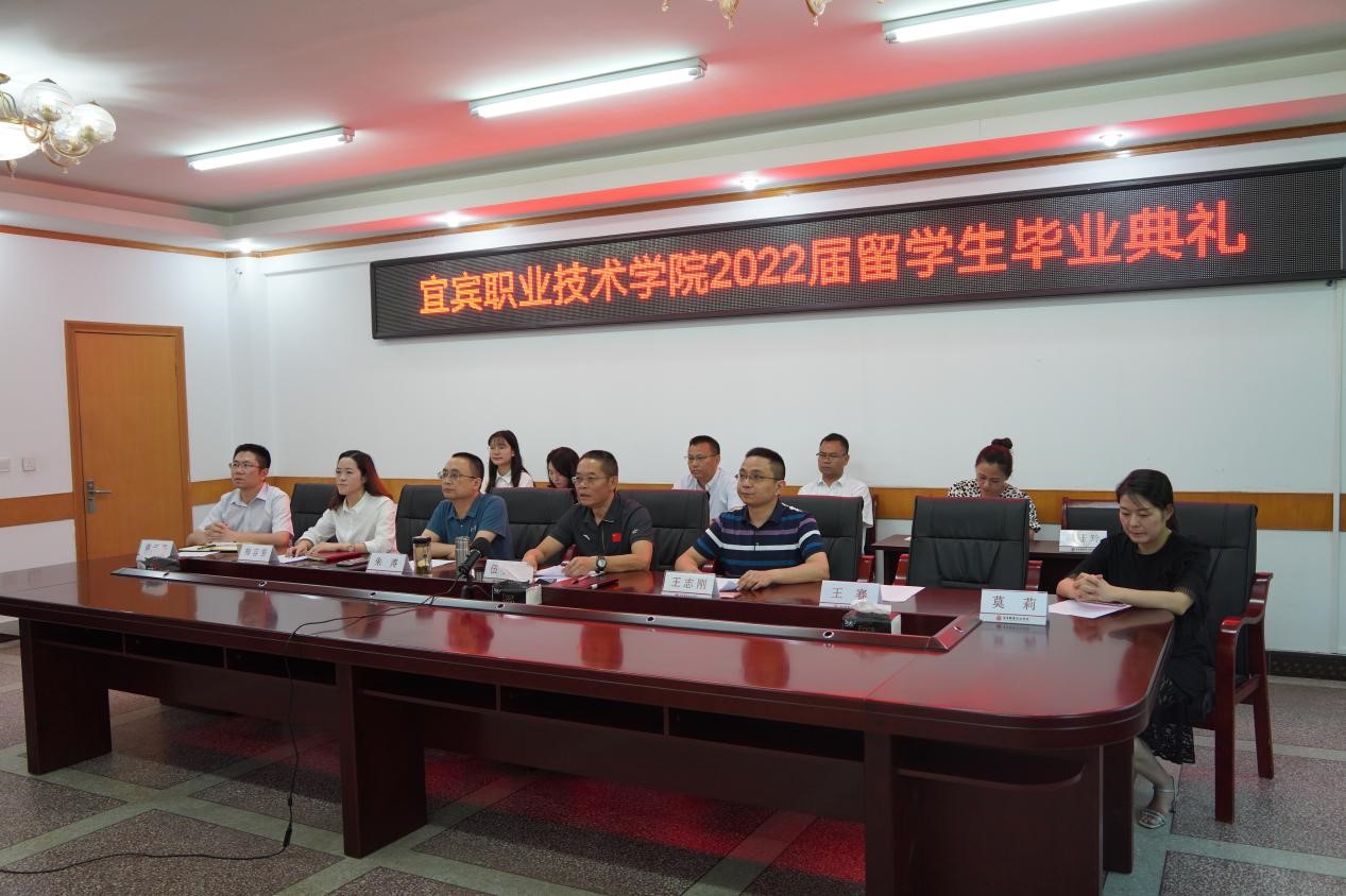 最后,伍小兵代表学院向2022届留学毕业生致以热烈的祝贺和美好的祝愿,向参与留学生教育教学工作的老师们表示衷心的感谢。伍小兵表示,2022届老挝留学生为学院注入了一股新的力量,带来了一种新的气息。他寄语全体留学毕业生:一是做美好世界的参与者,要具有人类命运共同体的意识,积极参与“一带一路”建设;二是做中老友好的催化剂,自觉成为中老文化交流的使者和桥梁;三是做国家发展的筑梦人,把在中国、在宜宾职院学到的知识技能和成功经验带回老挝,积极投身于祖国建设;四是做终身学习的追梦人,保持求知欲,持续不断地提升自己。愿留学生们也带着中国故事,伴着中国祝福,走向新的征程。