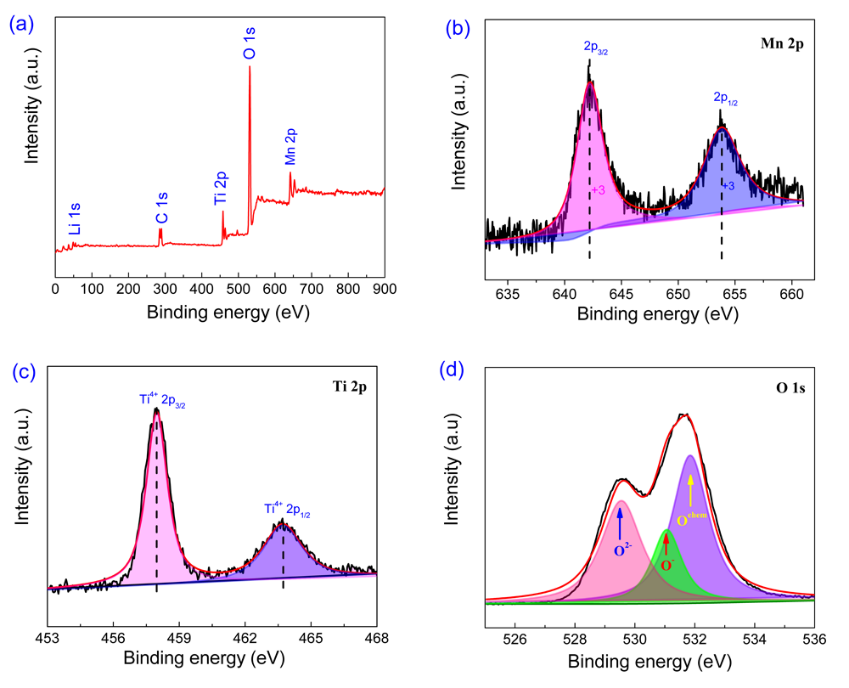 图四.所制样品材料Li1.3Mn0.4Ti0.3O2的XPS图