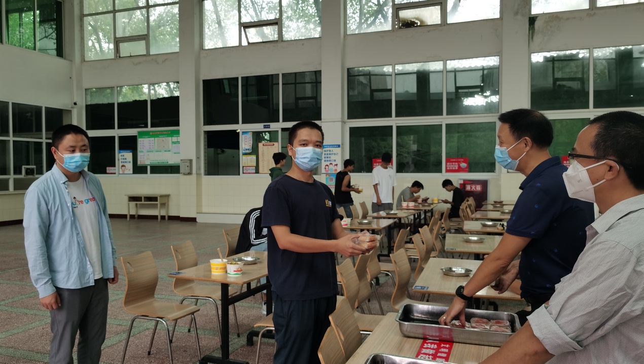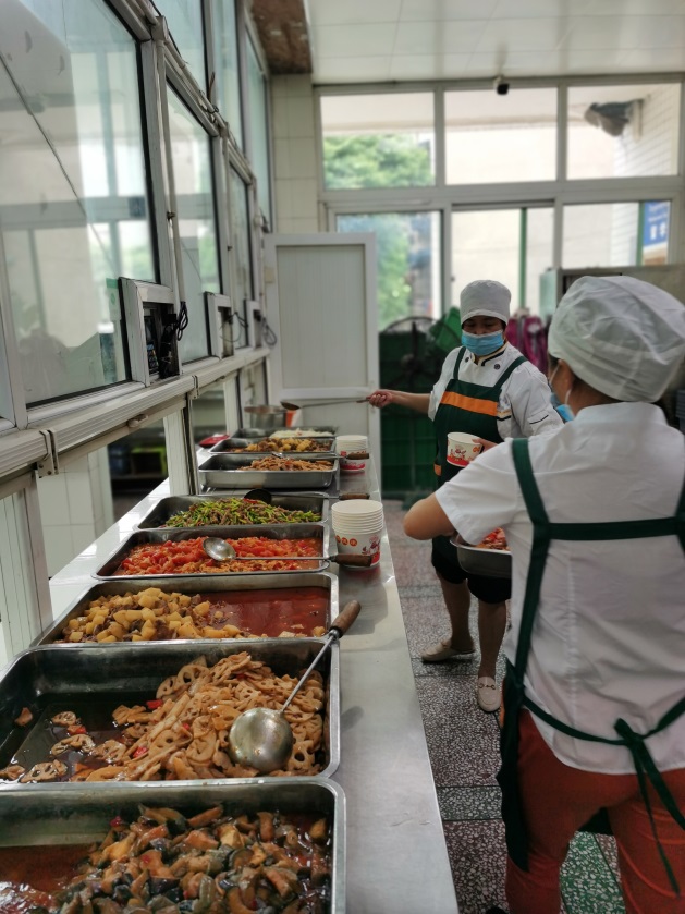 实施静态管理意味着因工作原因留在学校的50多名教职员工、留(返)校114名学生不能离校返家,需要较长时间住学校。学院领导立即指示基建后勤处组织学生到A2区进行集中统一管理,切实做好留校师生员工饮食生活保障。基建后勤处立即签购储备了15天的米、面、肉食、蔬菜等,足以保障其间的基本生活供应。同时,按照“食品安全化、菜品多样化、价格便宜化、改进及时化”原则,切实改善伙食,做到确保在校学生及因防疫工作坚守岗位的相关人员每日三餐供给,使其安心接受静态管理。