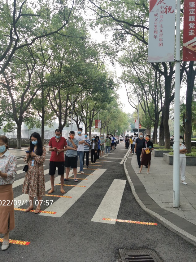 结合新村社区核酸采集人员严重不足的实际,学院防控办每天组织10余名志愿者,提前布置到拟核酸检测场地、协助防疫相关人员、维护核酸采集秩序、帮助老年人做好核酸检测,提醒全体人员戴好口罩并严格按照“一米线”排队、协助医务人员分发核酸采集物品、认真录入被采集人员信息等,确保核酸检测现场每个环节衔接顺畅,秩序井然、运行高效。