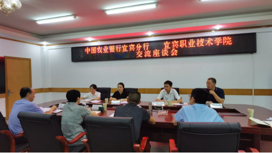 9月1日下午,中国农业银行宜宾分行行长严静一行到校开展交流,双方在学院办公楼422会议室举行座谈,会议由学院党委副书记、院长伍小兵主持。