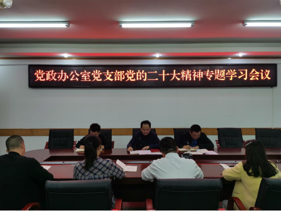 11月11日,党政办公室党支部在办公楼422会议室召开第二次党的二十大精神专题学习会。