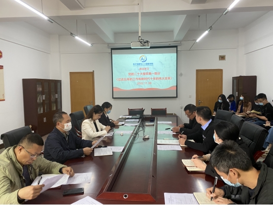 11月8日,电智学院党总支召集全体教职员工在办公楼518召开会议,传达学习党的二十大精神。
