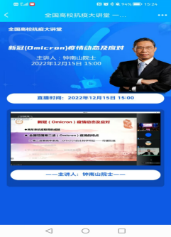 12月15日下午3点,我院组织师生认真收看了钟南山院士所作题为“新冠疫情动态及应对”的网络直播报告。