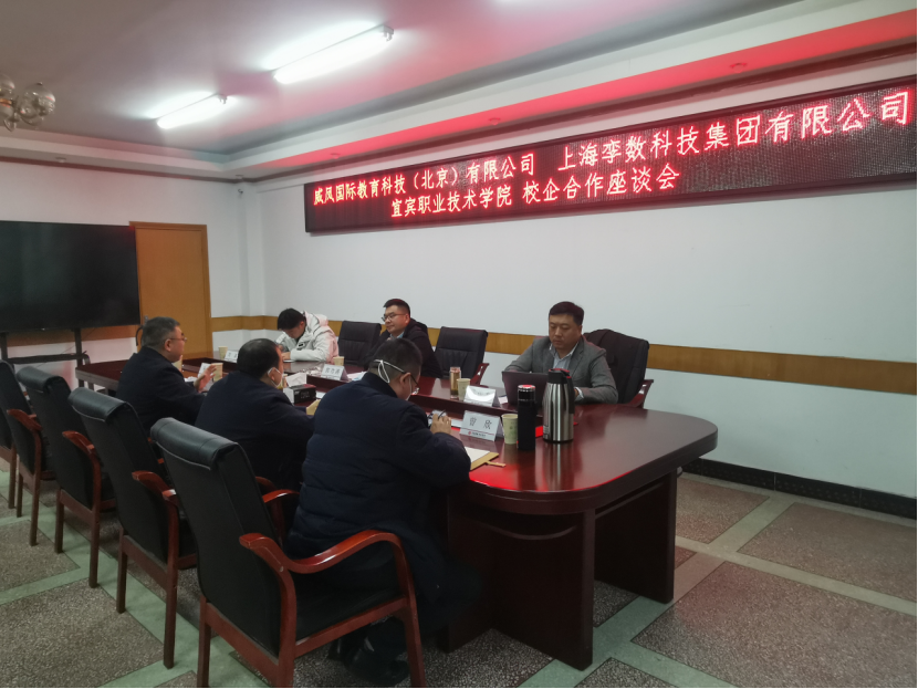 12月20日下午,我院与凤凰卫视集团·威凤国际教育科技(北京)有限公司、上海孪数科技有限公司在办公楼422会议室举行校企合作座谈。凤凰卫视集团·威凤国际教育科技(北京)有限公司总经理郭功涛、上海孪数科技有限公司法定代表人马俊杰,学院党委书记林世全,党委常委、副院长朱涛出席并讲话。