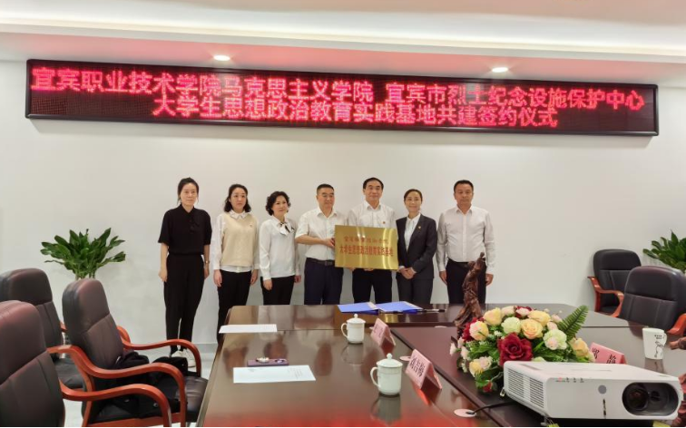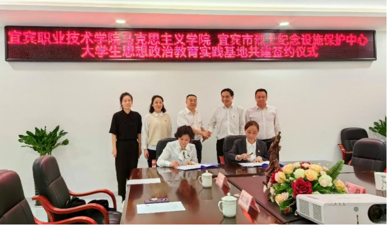 刘吉梅、郑静分别代表双方签订了大学生思想政治教育实践基地共建协议书。随后,我院师生实地参观了宜宾市烈士纪念馆。