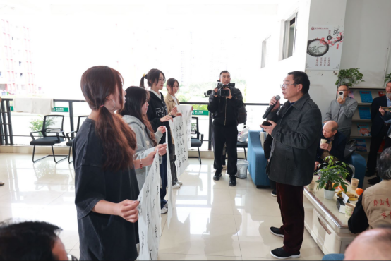 活动中,书画家们参观点评学生书画作品、指导学生现场创作,学生们收获满满。