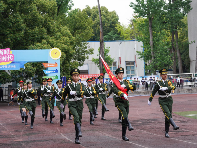 伴随着时而铿锵有力,时而激越高亢,时而舒畅平缓的鼓声,第二十届运动会拉开了序幕。运动员进行曲激昂振奋,各方队步入运动场,主持人依次进行介绍,运动场欢腾雀跃。首先入场的是国旗校旗会徽护卫方队,他们迈着铿锵有力的步伐,护卫着国旗、校旗和第二十届运动会会徽走向主席台,随后入场的是各二级学院方队,他们用各具特色的方式展现出自己的专业特点,以最饱满的姿态、最自信的风采依次走过主席台,接受检阅,为大家带来一场场注入青春活力与创意想法的精彩表演。活力四射的啦啦操表演更是将运动会开幕式推向高潮。