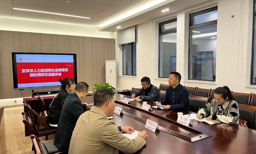 为全面推进技能人才评价工作,提高评价工作质量,服务高技能人才培养,11月25日,四川省职业技能鉴定指导中心、宜宾市人力资源和社会保障局领导及专家来校调研、评审和指导学院技能人才评价工作,学院党委常委、副院长朱涛出席座谈会并陪同调研。