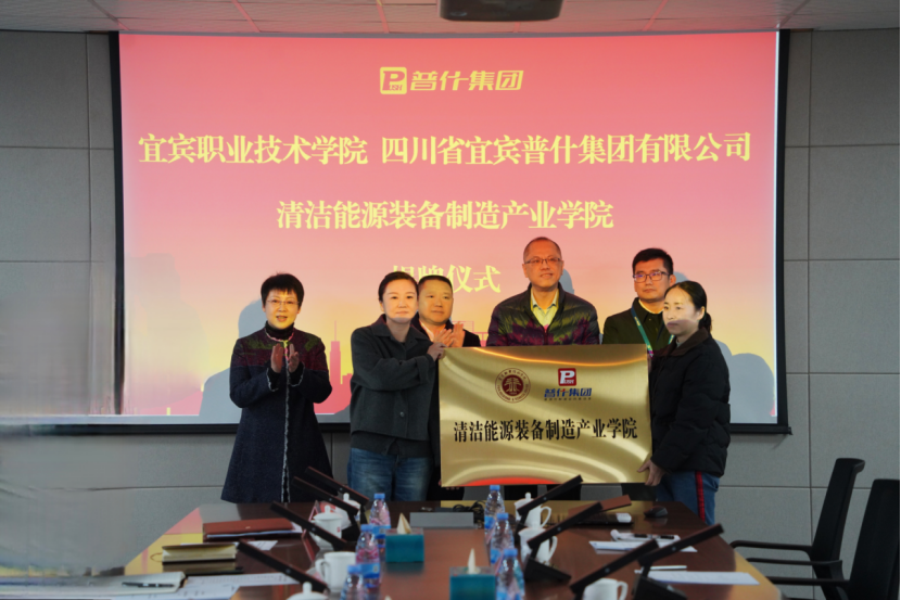 当前,宜宾市紧抓四川推动绿色低碳优势产业高质量发展的重大机遇,构建以新型工业化为主导的现代产业体系,奋力打造国家产教融合示范城市、西部地区重要的清洁能源基地。为应对产业发展和职业教育改革趋势,着力解决产业竞争日趋激烈、技术创新驱动不足、人才结构供需失衡等现实难题,作为宜宾市职业教育和国有企业的中坚力量,宜宾职院与普什集团联合组建了“清洁能源装备智能制造产学研综合平台”,并成功立项为四川省第二批产教融合示范项目。“清洁能源装备制造产业学院”的成立正是该示范项目体制机制创新的重要举措。