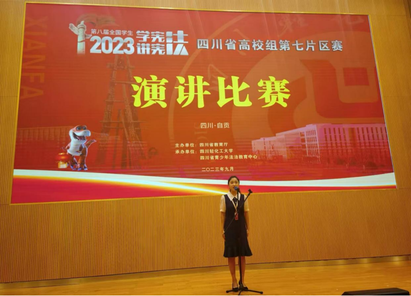 今年9月,我院组织学生开展了“学宪法,讲宪法”演讲比赛,通过层层选拔,推选出机电一体化技术12203陶天庭参加四川省第八届学生“学宪法 讲宪法”高校组第七片区赛素养竞赛;工程造价12201曾麟媛参加四川省第八届学生“学宪法 讲宪法”高校组第七片区赛演讲比赛。按照“以赛促学”的要求,着力提高学生对宪法内涵的理解。