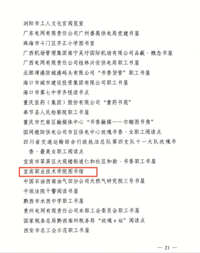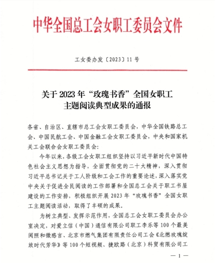 近日,中华全国总工会女职工委员会办公室公布了2023年“玫瑰书香”全国女职工主题阅读典型成果名单,welcome皇冠地址图书馆获评全国总工会“玫瑰书香•最美女职工阅读点”,全宜宾市仅两家单位获此殊荣。