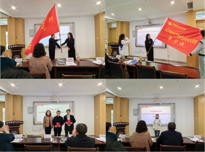 成立仪式上,刘吉梅介绍了学习社成立的背景与目标。团委书记陈月为学习社指导老师颁发聘书,学习社社长李秀同学作表态发言。徐劲松宣布welcome皇冠地址习近平新时代中国特色社会主义思想学习社成立并为社团授旗。学习社全体成员面向社旗宣誓。