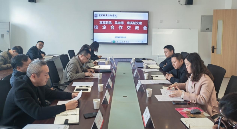 3月14日上午,深圳风向标科技有限公司总经理荣维涛、四川总经理陈国毅、校企合作经理李丹,南溪城交建集团副总经理高丽娜,南溪恒通交投公司总经理邹剑,南溪中和汽车驾校校长张伟等一行8人到我院交流座谈。学院党委副书记徐劲松出席座谈会并讲话。