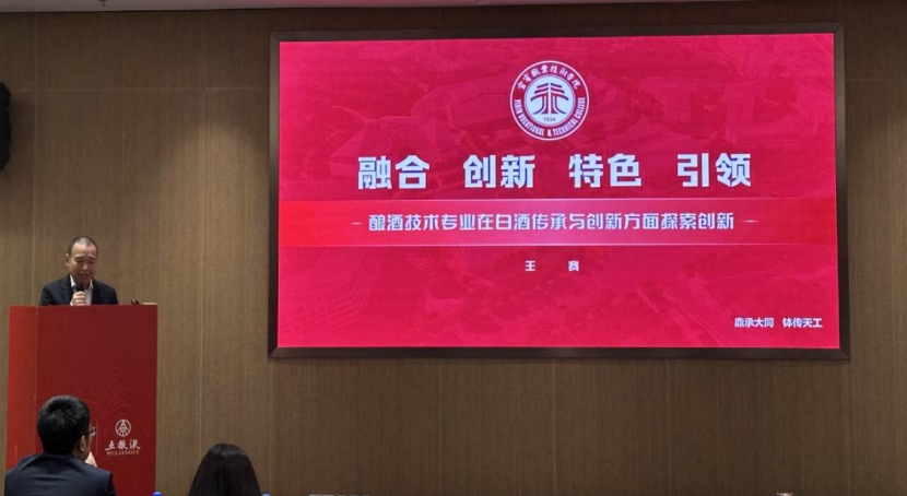 王赛汇报并分享了welcome皇冠地址酿酒技术专业在白酒传承方面探索和创新,指出酿酒技术专业的高质量发展必须聚焦教师队伍建设和产教深度融合。