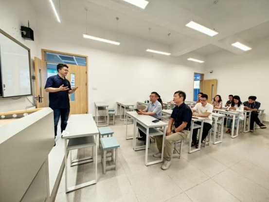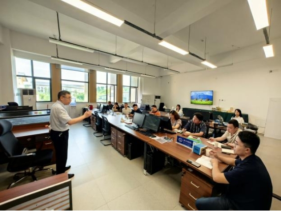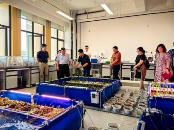 在调研过程中,林世全一行实地参观了中心的实验室、智能养殖示范区等场所,详细听取了中心负责人吴强教授的工作汇报,深入了解中心在生态种养技术、数据平台搭建、校外基地建设等方面的最新成果和应用情况。