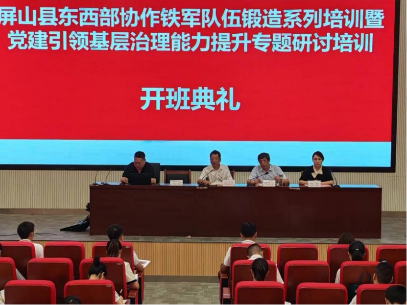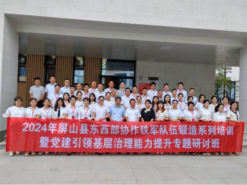 为进一步深化东西部协作党建联盟建设内涵,不断增强基层党组织的政治引领能力和组织管理水平,培养锻造一大批政治引领能力强、组织管理高效的基层治理骨干队伍,为高质量实施乡村振兴提供坚强有力的治理人才支撑,7月22日上午,2024年屏山县东西部协作铁军队伍锻造系列培训暨党建引领基层治理能力提升专题研讨班开班典礼在我院举行。