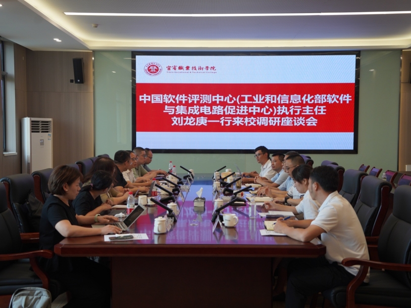 8月5日,中国软件评测中心执行主任刘龙庚率队到我院调研交流。宜宾市委保密机要局局长、宜宾市信创办主任刘卫,学院党委书记林世全,党委常委、副院长朱涛参加调研。