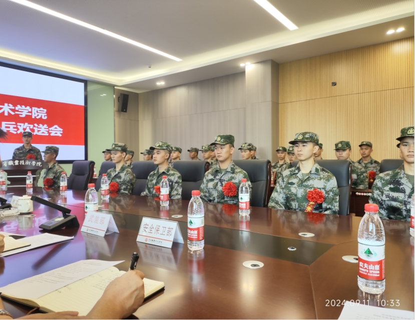 学院武装部部长、征兵工作站站长李强,安全保卫部、教学管理与质量处、学生工作部相关负责人参加会议,并分别对役前集训注意事项、学籍、专升本、资助等相关注意事项作了要求和阐述。