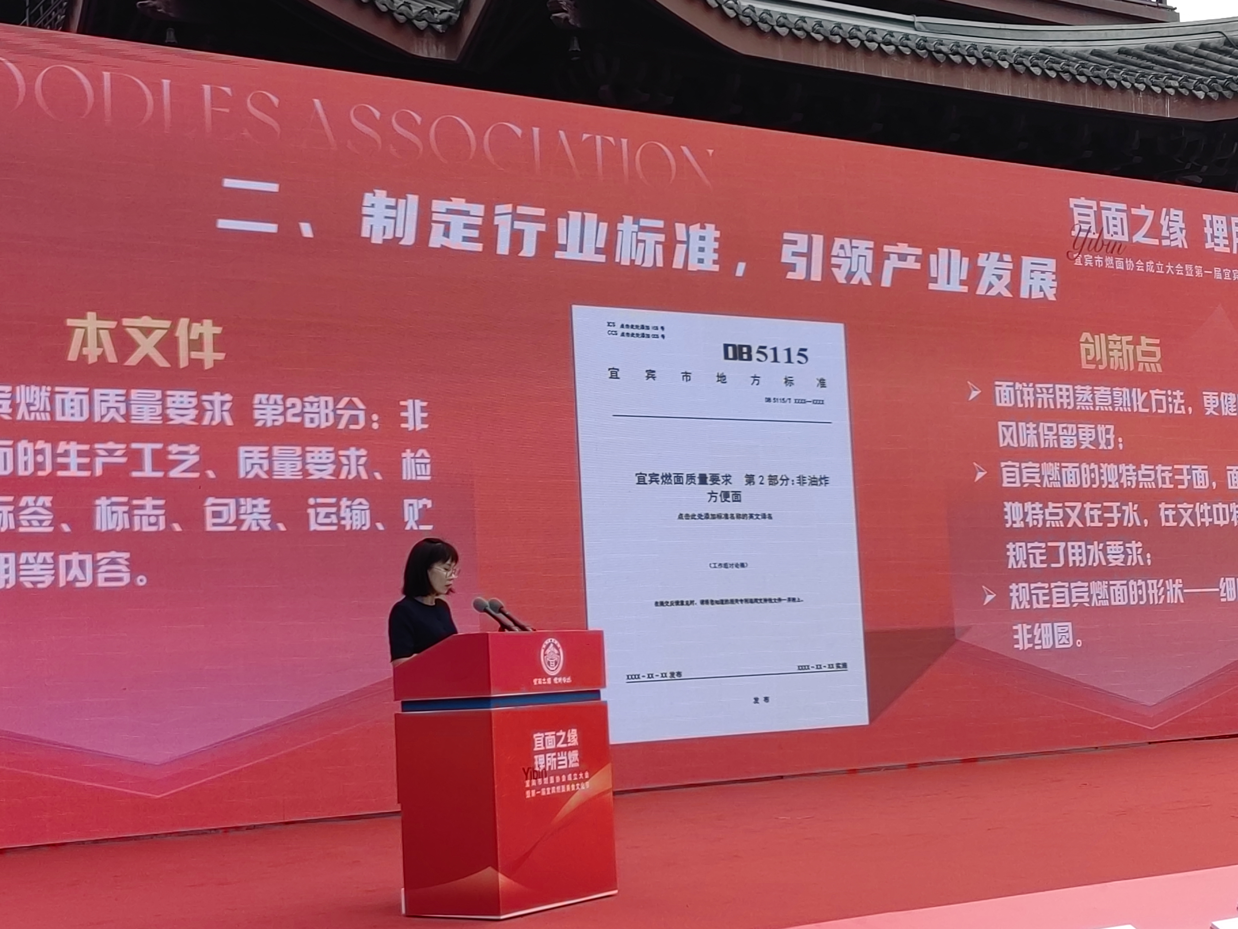 仪式上,宜职院五粮液技术与食品工程学院(宜宾燃面学院)副教授兰小艳对宜宾燃面产业情况、相关标准立项和建设情况、绿色认证等相关情况进行详尽汇报。