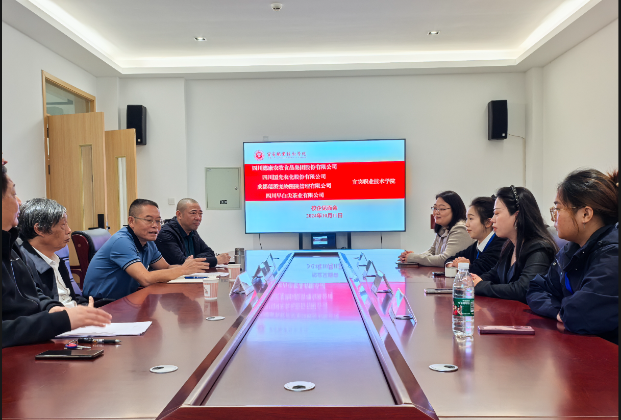 招聘结束,在校企见面会上,伍小兵、周黎军及相关部门负责人访谈了与会企业代表。四川德康农牧有限公司、四川早白尖茶业有限公司、四川国光农化股份有限公司、成都瑞派宠物医院管理有限公司四家企业代表围绕学校发展、人才培养、师资素养提升、校企融合发展积极献计献策,提出了很多合理化建议。
