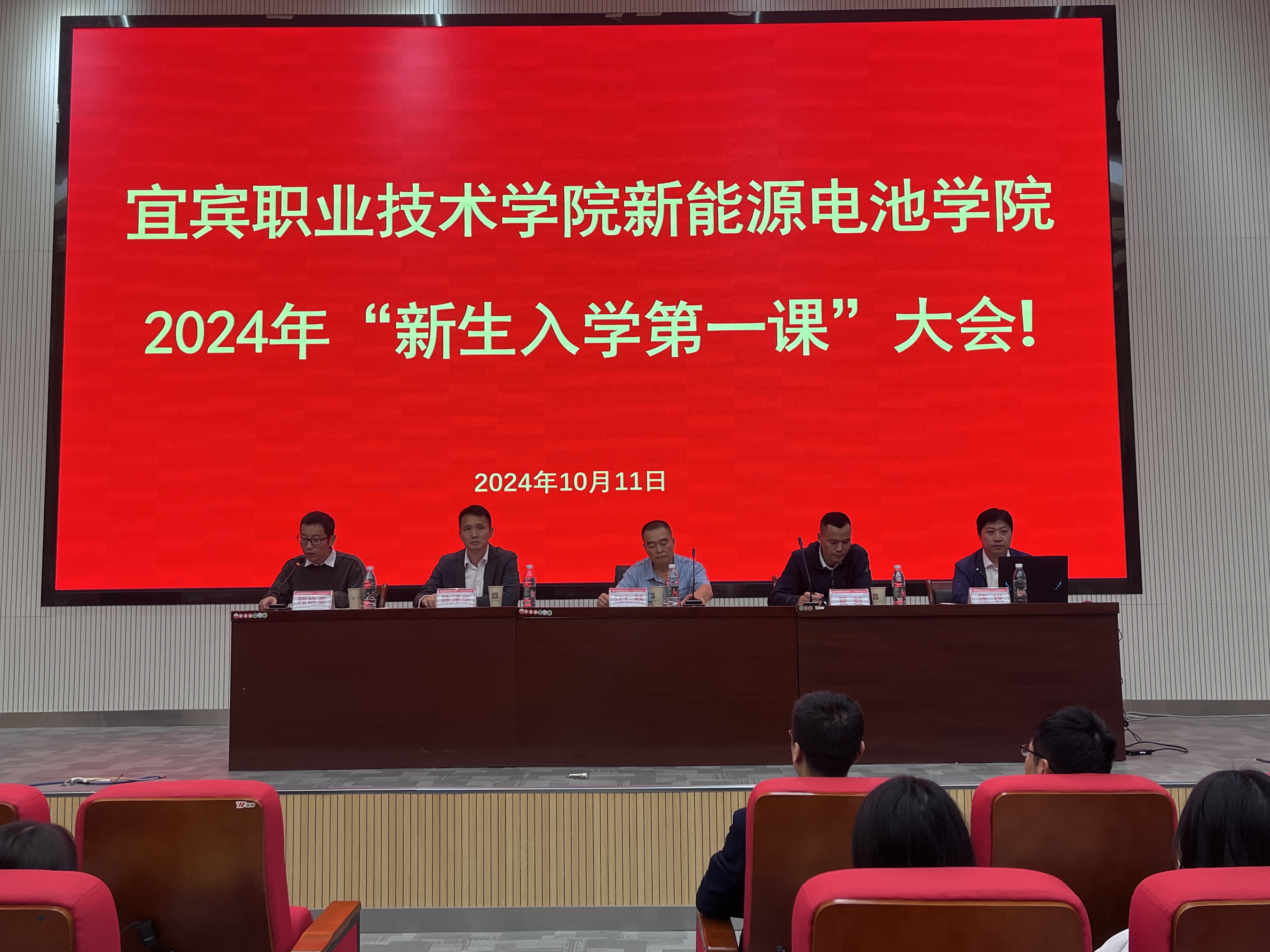 为全面落实学院“三全育人”工作要求,助力2024级新生深入了解学院和专业发展愿景,明确奋斗目标,激发学习热情,开启成长之旅,10月11日,新能源电池学院在崇信楼A117报告厅召开2024年“新生入学第一课”大会。学院党委常委、副院长江仁朝,宜宾创能测试分析技术服务有限公司总经理瞿毅,新能源电池学院院长陈泽华出席会议。