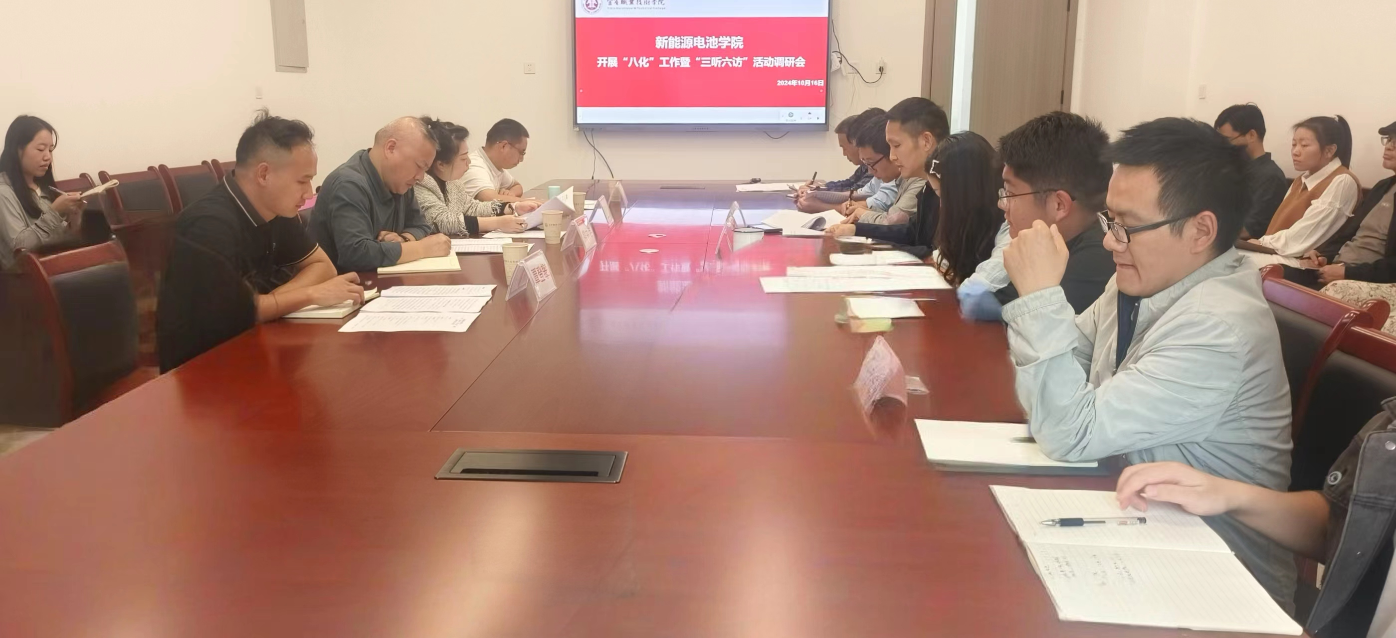 10月16日,学院党委常委、纪委书记熊中海到新能源电池学院(以下简称“新电学院”)开展落实“八化”工作暨“三听六访”活动调研座谈。会议旨在全面总结新电学院在“八化”工作方面的进展,并深入探讨执行力、党风廉政建设、师资队伍建设及重大项目建设等关键议题,为新电学院未来发展提供有力支持。新电学院院长陈泽华主持会议。