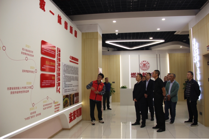 程晓华一行先后考察了五粮液技术与食品工程学院、四川惠科检测技术有限公司(校企合作企业)、宜宾燃面学院,并详细了解学院的专业建设、产教融合校企合作等情况。