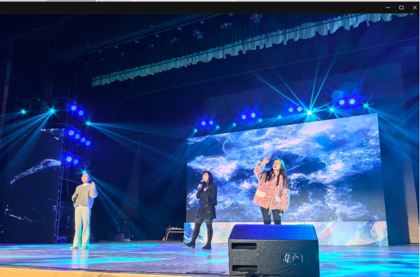 周黎军代表学院致辞。文艺晚会在学生管理科老师们深情婉转的歌曲中拉开序幕。