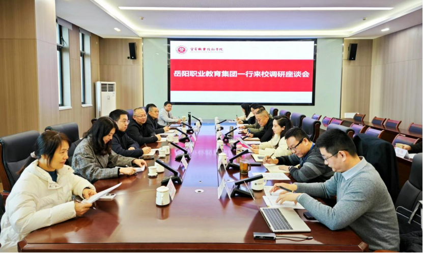 11月28日,岳阳职教集团副理事长兼秘书长、岳阳职业技术学院党委副书记、校长黄岳山,湖南省工业技师学院校长符兴承一行7人到我院调研交流。我院党委副书记、院长伍小兵,党委副书记徐劲松分段陪同。