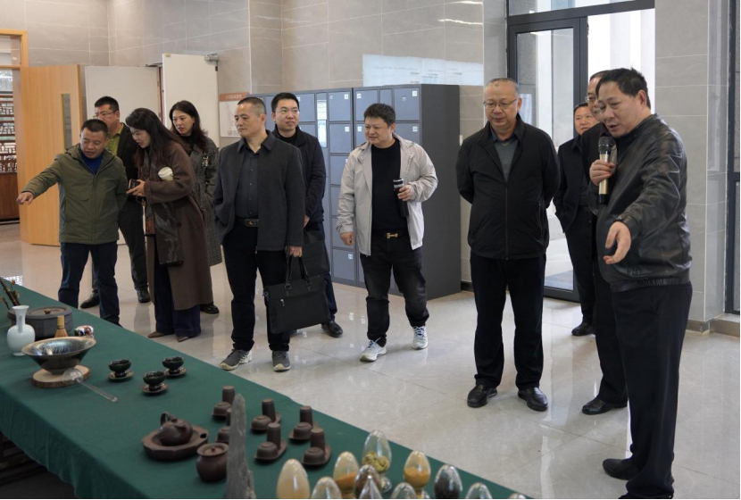 会前,黄岳山、符兴承一行调研了虚拟仿真实训基地、燃面学院、现代农业学院、智能制造学院。