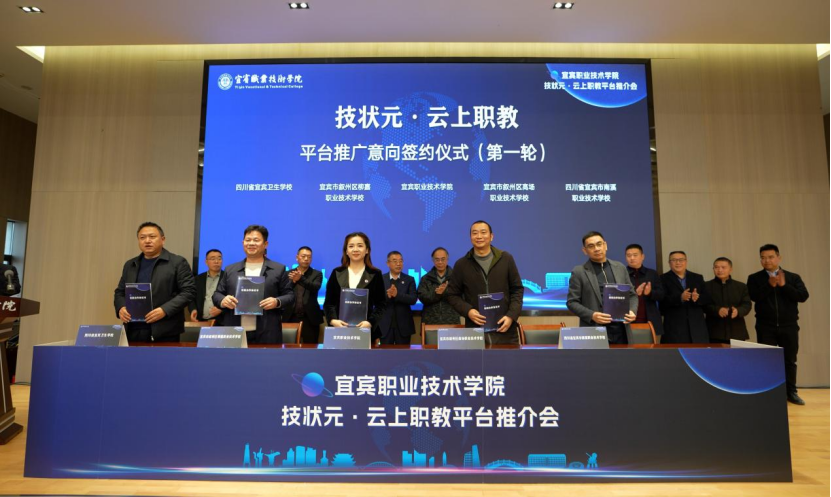 随后,宜宾市13所中职院校和我院进行了平台推广意向签约。